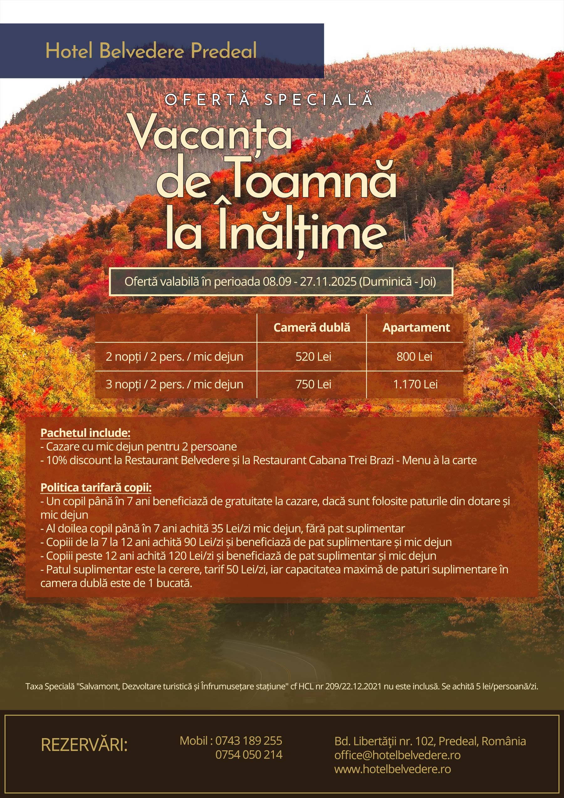 – Al doilea copil până în 7 ani achită 35 Lei/zi mic dejun, fără pat suplimentar